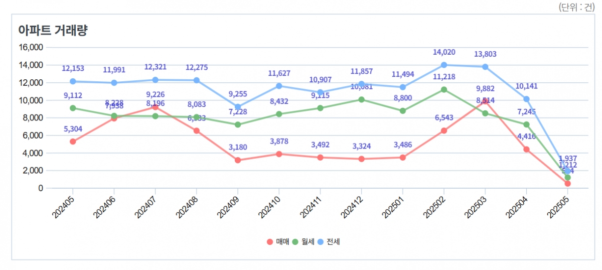 이처럼 거래량은 줄고 수요는 왜곡되다 보니 전세가격은 오름세다. 4월 기준 수도권 아파트 평균 전세가격은 3.3㎡당 1386만원으로 지난해 같은 달(1324만 원) 대비 4.7% 상승했다. 이는 2023년 1월 이후 약 1년 3개월 만의 최대 상승폭이다.