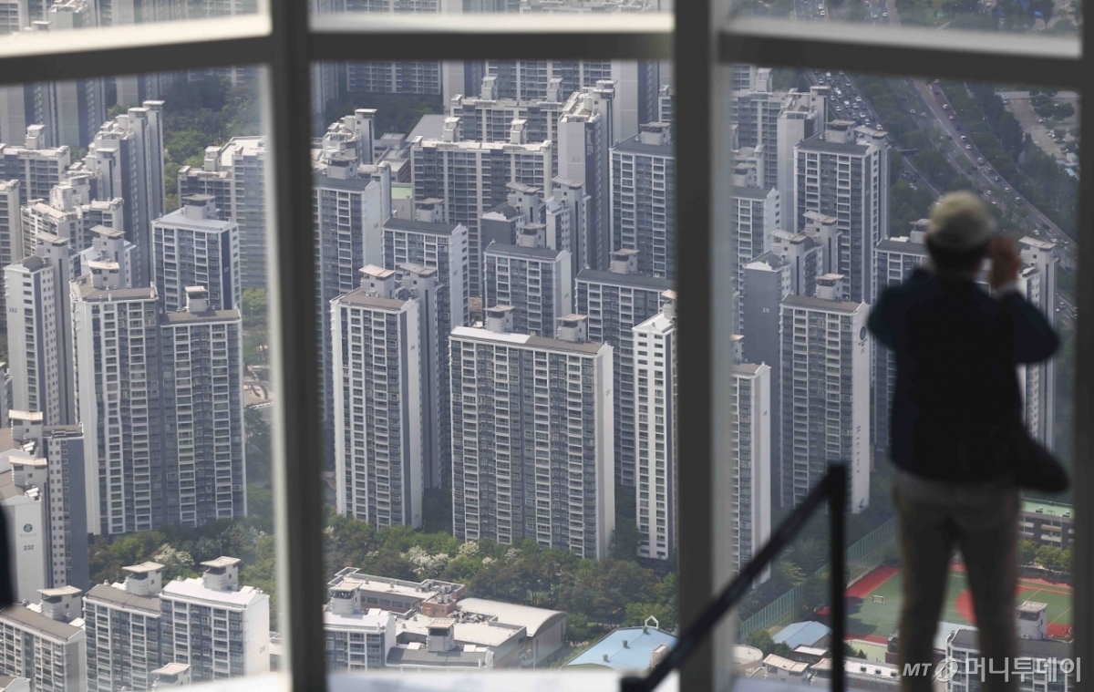 ![[서울=뉴시스] 김근수 기자 = 7일 서울 송파구 롯데월드타워 스카이전망대에서 강남 주변 아파트 단지가 보이고 있다. 토지거래허가구역 재지정 이후 재건축 아파트를 중심으로 신고가 행렬이 이어지는 가운데 송파구의 잠실 장미아파트와 주공5단지에서 신고가가 집중됐고, 잠실주공5단지 82.6㎡가 처음으로 40억원을 돌파했다. 강남구 압구정에서도 거래 22건 중 14건(64%)이 신고가였으며, 개포동의 거래 4건 모두 신고가를 기록했다. 대치동 역시 한보미도맨션2차 190㎡가 60억원, 개포우성1차 127㎡가 50억5천만원, 은마아파트 76㎡는 31억4천만원에 거래되며 신고가를 이어갔다.. 2025.05.07. ks@newsis.com /사진=김근수](https://thumb.mt.co.kr/cdn-cgi/image/f=avif/21/2025/05/2025052610272682631_1.jpg)