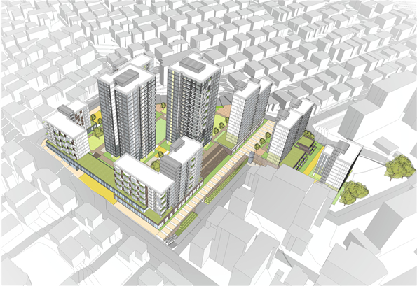 특히 표고 차이가 15m에 달하는 분지 형태로 동서 간 보행이 단절된 문제를 해결하기 위해 지형에 순응한 단지와 공공보행통로를 계획했다. 지형 레벨을 활용한 저층부 공간은 주민공동이용시설과 커뮤니티시설로 구성해 생활 편의를 도울 예정이다. 인근 용왕산근린공원과 연결되는 열린 보행네트워크를 조성해 접근성을 높인다.