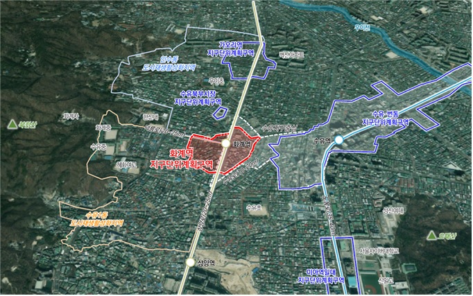 대상지는 2017년 우이신설선 경전철 화개역이 개통된 지역이다. 강북구 화계역 역세권에 다양한 생활서비스 제공 및 수유지구중심의 중심성 확대를 위한 신규 생활거점 육성을 목표로 이번 11만1179㎡ 규모의 지구단위계획구역 신설 계획을 수립했다.
