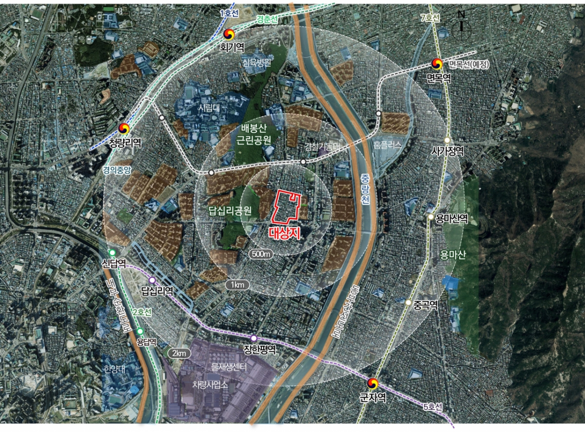 장안동 일대는 서측으로 배봉산, 동측으로는 중랑천과 용마산을 가까이 두고, 북측으로는 경전철 면목선 개통이 예정돼 있다. 우수한 입지조건과 잠재력을 갖추고 있음에도 불구하고 그간 청량리, 전농·답십리, 이문·휘경 생활권에 비해 큰 변화 없이 정체돼 있었다는 설명이다.