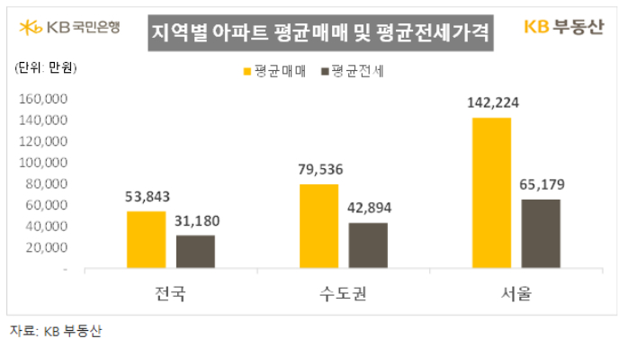서울 아파트 평균 매매가격은 14억 2224만원이다. 서울 아파트 매매가는 지난 4월 13억원을 넘어선 뒤 3개월 만인 지난 7월(14억 572만원) 2008년 통계 발표 이후 처음으로 14억원을 돌파했다.