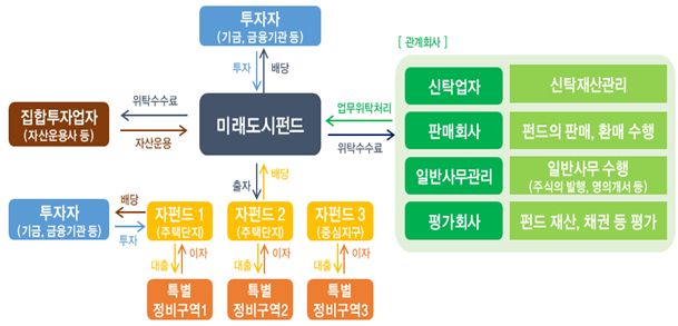미래도시펀드는 대규모 재원이 소요되는 노후계획도시정비사업의 초기사업비, 공사비 등을 안정적으로 조달하기 위해 조성하는 정책펀드다. AAA등급의 HUG 보증을 바탕으로 이자수익을 보장해 민간투자 유치를 추진한다.