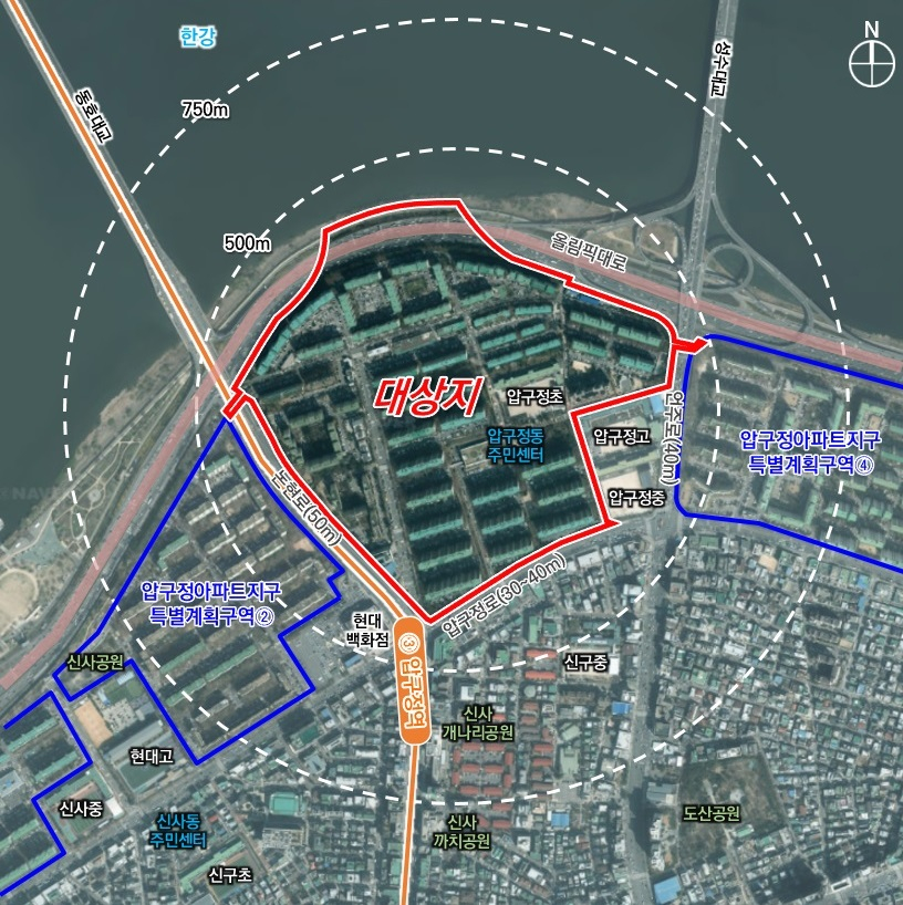 현재 압구정동 일대에서 재건축을 추진 중인 4개 구역(2~5구역) 중 3구역이 마지막으로 이번 도시계획위원회 수권분과소위원회 심의를 통과했다.