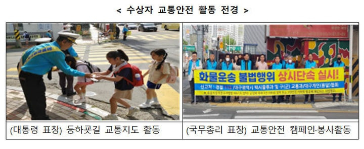 광주광역시와 경기도는 교통안전시행계획 우수 지자체로 장관상을 받는다. 이륜차 교통안전 정책 국민제안 공모전 수상자에게도 국토부 장관상이 수여된다.