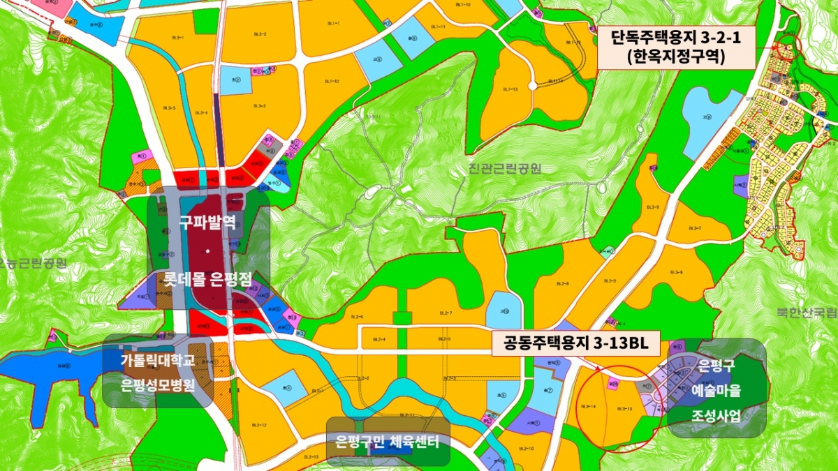 은평지구 매각 부지는 공동주택건설용지(3-13블록)와 단독주택용지(한옥)다. 예정가격은 각각 1445억원, 15억원이다. 인근 북한산국립공원과 근린공원이 넓게 조성돼 쾌적한 주거 환경을 갖추고 있다. 은평성모병원과 롯데몰 등 다양한 편의시설도 있다.