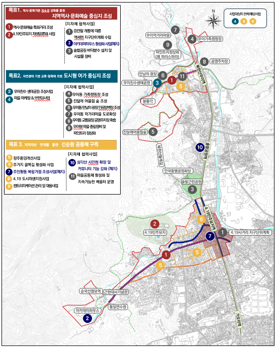 이번 도시재생활성화계획 변경(안)은 2017년부터 추진해 왔던 4.19사거리 일대 도시재생사업이 대부분 마무리됨에 따라 사업 추진 과정에서 조정된 사업 규모, 집행예산 등을 계획에 반영하기 위한 절차다.