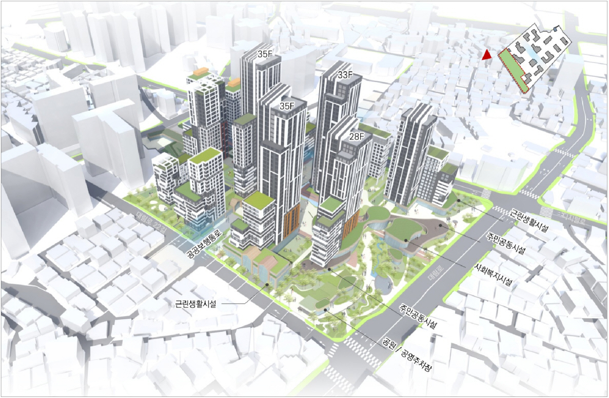 대림1구역은 35층 규모의 12개 동, 총 1026가구로 조성될 계획이다. 제3종 일반주거지역으로 용적률은 283.2%가 적용된다. 사업지 인근에서는 지구단위계획 재정비, 주거환경 개선사업, 역세권 장기전세주택 건립 등 다양한 정비사업이 함께 진행되고 있어 지역 생활 인프라도 크게 향상될 것으로 보인다.