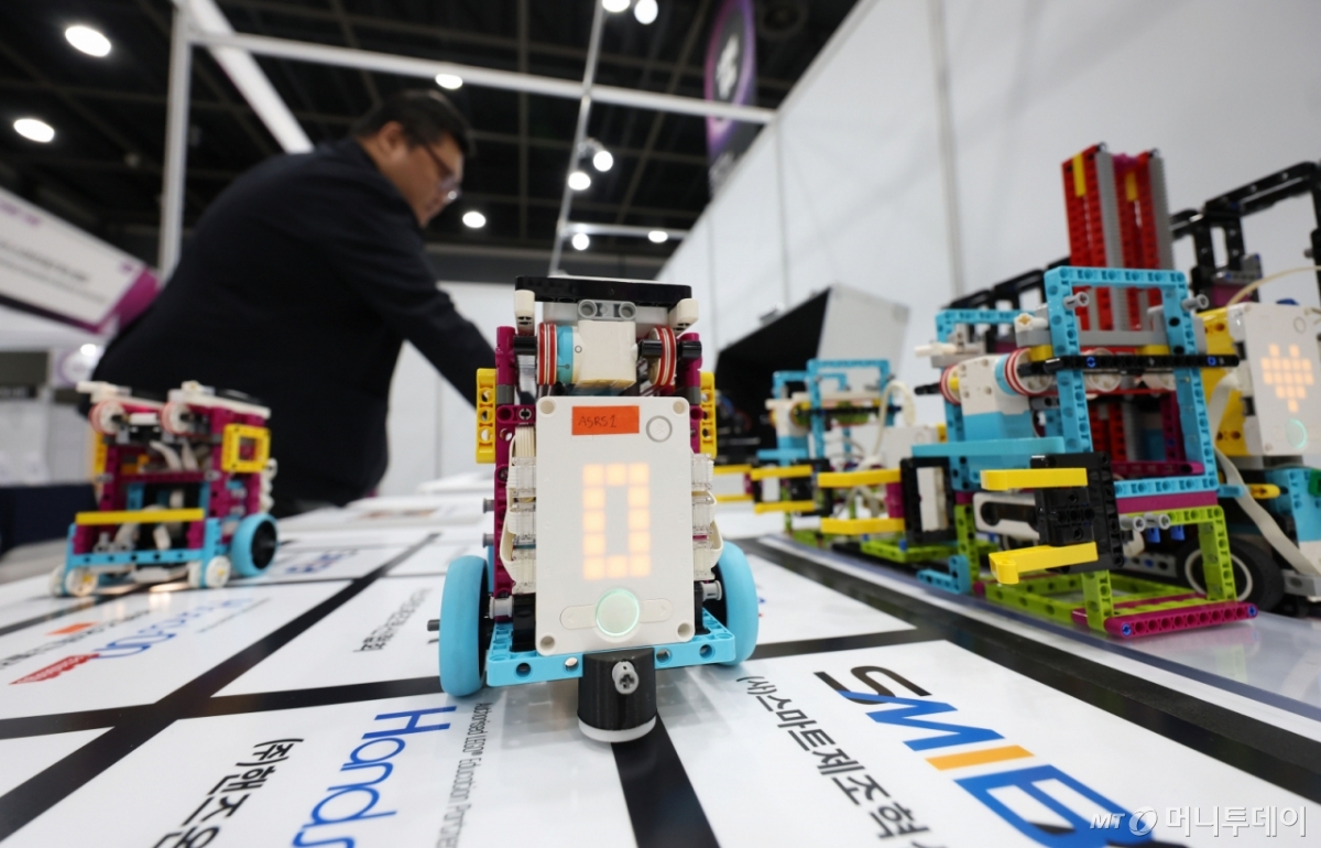 ![[서울=뉴시스] 홍효식 기자 = 22일 서울 서초구 aT센터에서 열린 2025 제조혁신코리아에서 물류 이송 장비와 창고 재고 관리를 학습할 수 있는 스마트팩토리 교구가 시연되고 있다. 2025.10.22. yesphoto@newsis.com /사진=홍효식](https://thumb.mt.co.kr/cdn-cgi/image/f=avif/21/2025/11/2025111912133269936_1.jpg)