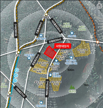 이에 따라 대상지는 999가구 규모의 주거단지로 거듭날 전망이다. 주변 저층 주거지 및 산지 지형을 고려한 가로 대응형 배치를 통해 조화로운 스카이라인을 형성하고, 백련산 방향 통경축을 확보해 단지의 개방감과 시각적 여유를 강화했다.