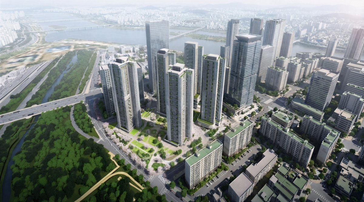 광장아파트는 1978년에 준공된 샛강변 노후단지로 이번 정비계획을 통해 용도지역이 제3종일반주거지역에서 일반상업지역으로 변경된다. 최고 49층 공동주택 1314가구 규모의 고품격 주거복합단지로 조성된다.