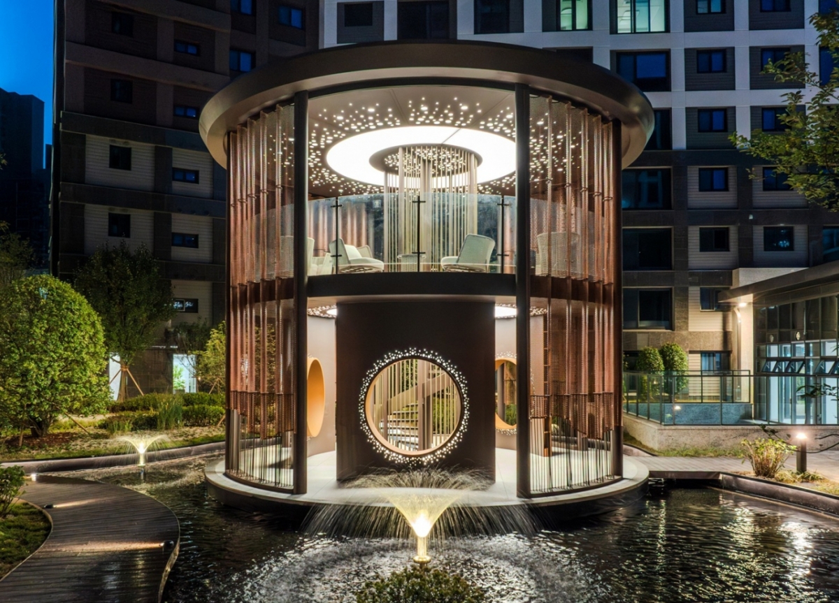 래미안 원페를라는 전통 조경 기법 '차경'을 활용한 북카페 공간과 미디어 글라스 조경, 기하학적 외관 디자인으로 단일 단지에서 3건의 본상을 받았다.