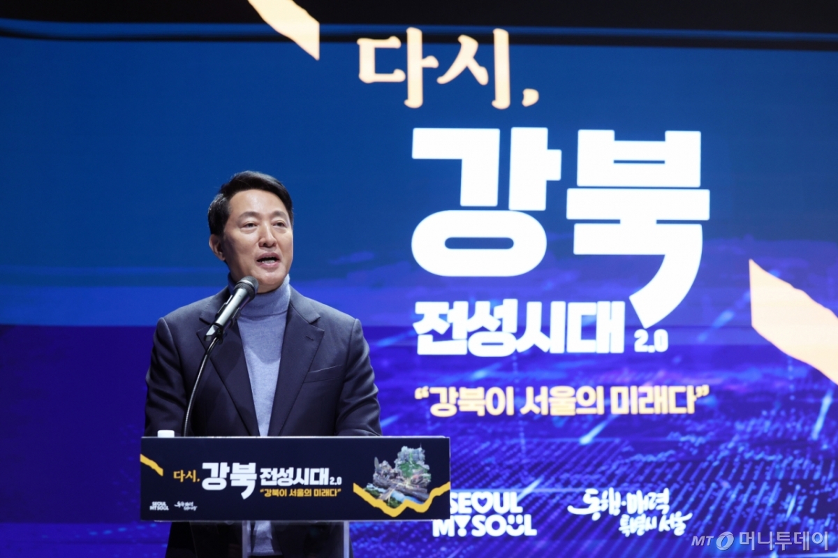 ![[서울=뉴시스] 김진아 기자 = 오세훈 서울시장이 19일 서울시청 서울갤러리 미래관에서 강남·북 균형발전을 실현하기 위한 '다시, 강북전성시대 2.0' 기자설명회를 하고 있다. '다시, 강북전성시대 2.0'은 재원 16조원(국고보조금·민간투자 6조원+시비 10조원)을 투자해 강북 지역 교통망을 확충하고 산업 거점을 조성해 도시 구조를 재편하는 사업이다. 2026.02.19. bluesoda@newsis.com /사진=김진아](https://thumb.mt.co.kr/cdn-cgi/image/f=avif/21/2026/02/2026021911212830977_1.jpg)