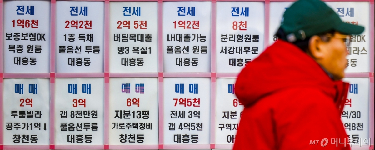 ![[서울=뉴시스] 정병혁 기자 = 29일 서울시내 부동산에 매물정보가 붙어있다. 이달 서울의 전세수급지수가 163.7로 4년4개월 만에 최고치를 기록했다. 전세수급지수는 기준선인 100을 초과할수록 '공급 부족' 비중이 높다는 의미인데 지난해 7월부터 6개월째 상승세를 보이고 있다. 월간 주택가격 동향 시계열 자료에 따르면 1월 서울 전세수급지수는 전월 대비 3.9포인트(p) 상승한 163.7을 기록했다. 이는 2021년 9월(167.7) 이후 최고치다.2026.01.29. jhope@newsis.com /사진=정병혁](https://thumb.mt.co.kr/cdn-cgi/image/f=avif/21/2026/02/2026021913340051088_1.jpg)