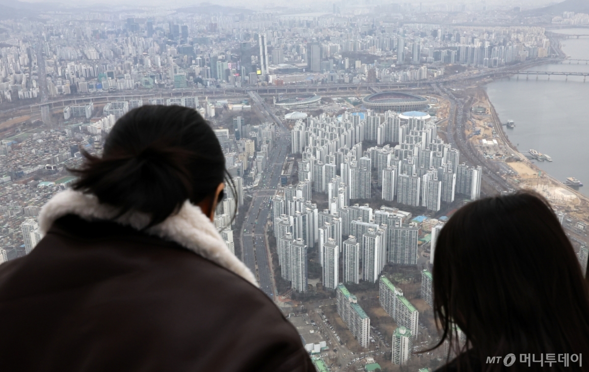 ![[서울=뉴시스] 최진석 기자 = 주택 가격이 오를 것이라는 기대감이 3년 7개월만에 최대 폭으로 떨어진 것으로 발표된 24일 서울 송파구 롯데월드타워 전망대 서울스카이에서 서울 한 아파트 단지가 보이고 있다. 이날 한국은행이 발표한 '올해 2월 소비자동향조사' 결과에 따르면 주택 가격 상승 기대감이 낮아지며 주택가격전망CSI(108)가 전월 대비 16포인트 하락했다. 이는 지난 2022년 7월(-16포인트) 이후 3년 7개월 만에 가장 큰 폭으로 떨어졌다. 2026.02.24. myjs@newsis.com /사진=최진석](https://thumb.mt.co.kr/cdn-cgi/image/f=avif/21/2026/02/2026022614023596786_1.jpg)