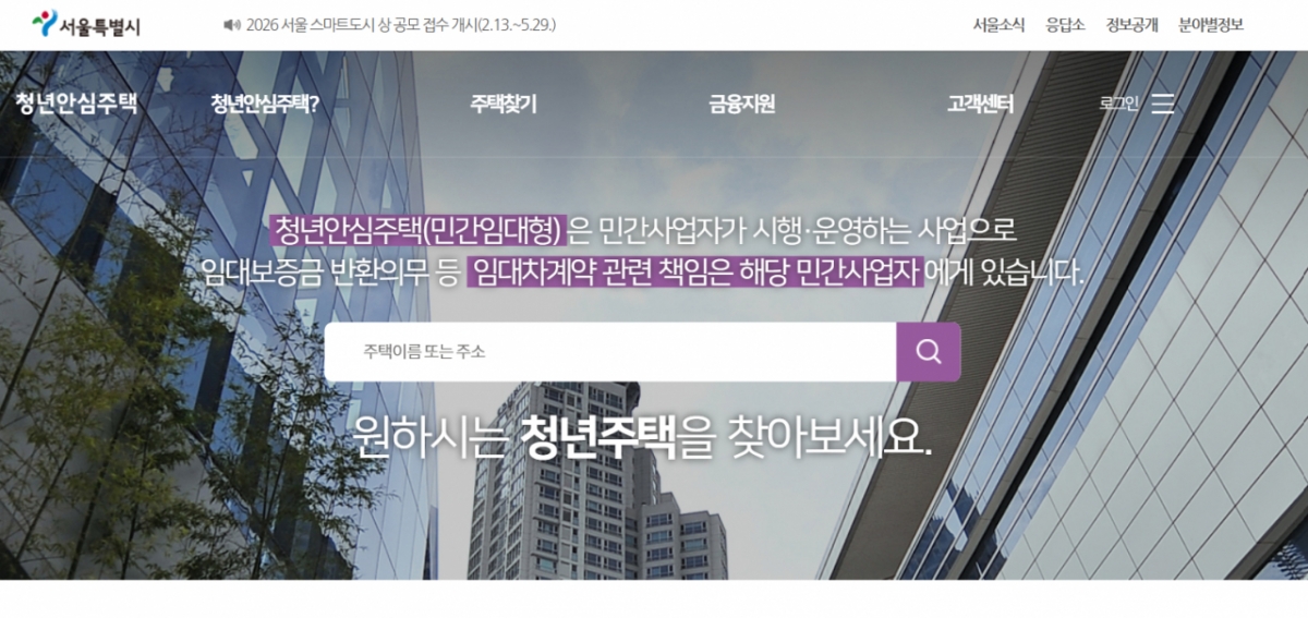 서울시 청년안심주택 공식 홈페이지에 게시된 민간 임대 관련 안내 문구/사진=청년안심주택 홈페이지