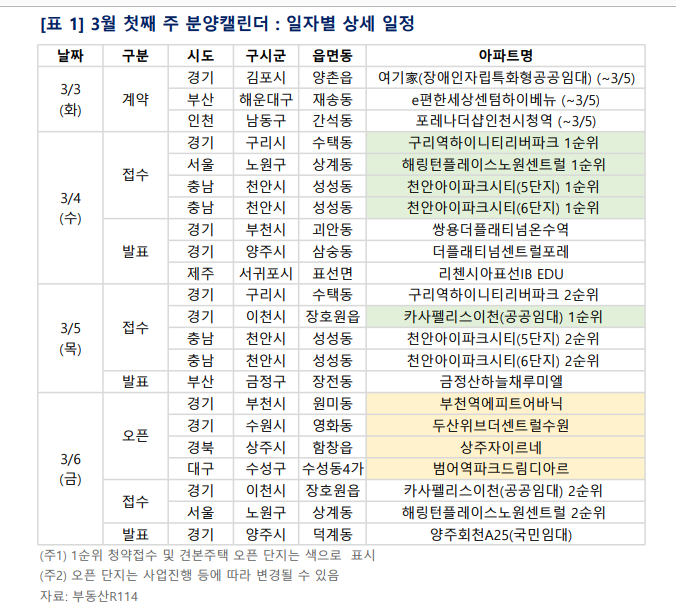 분양 물량은 2월 넷째 주 대비 증가한 수준이다. 업계에서는 봄 분양 성수기에 접어들며 수도권과 지방 주요 단지를 중심으로 청약 열기가 이어질 것으로 보고 있다.