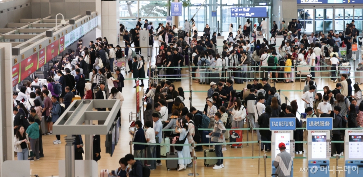 ![[서울=뉴시스] 김선웅 기자 = 개천절이자 추석 연휴 첫 날인 3일 인천국제공항 출국장에서 여행객들이 출국 수속을 밟고 있다. 2025.10.03. mangusta@newsis.com /사진=김선웅](https://thumb.mt.co.kr/cdn-cgi/image/f=avif/21/2026/03/2026030415000358507_1.jpg)