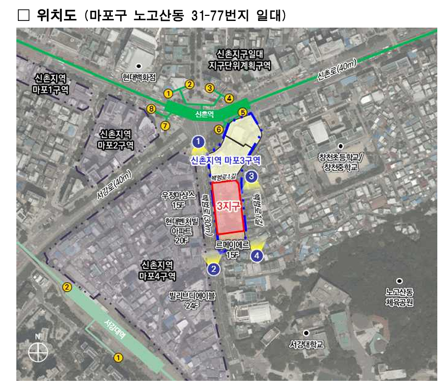서울시는 지난 4일 열린 도시계획위원회 수권분과위원회에서 신촌지역 마포3구역 3지구 도시정비형 재개발사업을 위한 정비계획 변경안을 수정 가결했다고 5일 밝혔다. 대상지는 마포구 노고산동 31-77번지 일대로 신촌역 인근 백범로에 접한 역세권 지역이다.