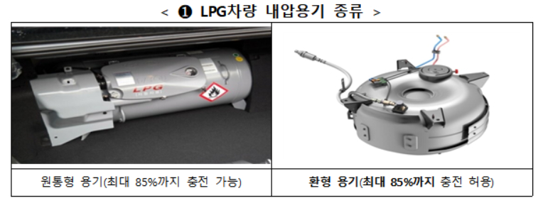 이번에 행정예고하는 개정안에 따라 자동차 LPG 환형 내압용기 최대충전율은 기존 80%에서 85%로 상향된다. 현행 LPG 차량의 내압용기 최대충전율은 용기 형태에 따라 다르게 적용되고 있다. 원통형 용기의 최대충전율은 용적의 85%, 환형 용기의 최대충전율은 용적의 80%다. 이로 인해 환형 용기를 사용하는 택시는 상대적으로 충전 횟수가 많아지는 불편이 있었다. 이에 1회 충전 시 주행거리 향상을 위해 환형 용기의 최대충전율 상향해달라는 택시업계의 목소리가 많았다.