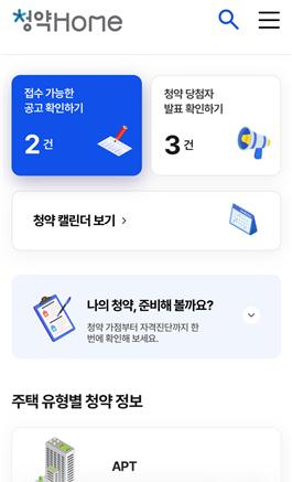 또 검색 기능을 새롭게 도입해 입주자모집공고와 청약홈 메뉴를 빠르게 찾을 수 있게 바꿨다. 반응형 화면을 전면 적용해 개인용 컴퓨터(PC), 태블릿, 스마트폰 등 기기 종류와 관계없이 일관된 이용 환경을 제공하고 글자·색상 체계를 재정립해 시각적 편의성도 극대화했다.