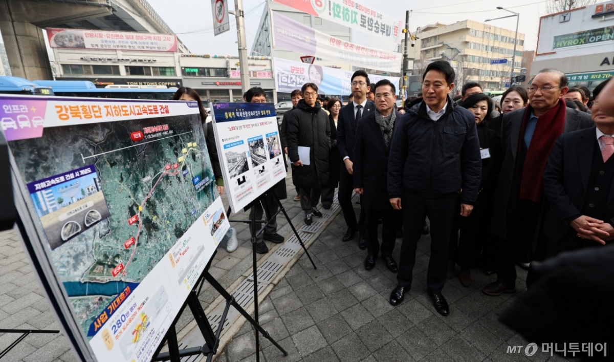 ![[서울=뉴시스] 박주성 기자 = 오세훈 서울시장이 15일 서울 서대문구 홍제천 일대 내부순환로 현장을 방문해 관계자에게 강북횡단 지하도시고속도로와 관련 설명을 듣고 있다. 2026.01.15. park7691@newsis.com /사진=](https://thumb.mt.co.kr/cdn-cgi/image/f=avif/21/2026/03/2026031608030356855_1.jpg)