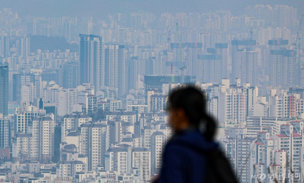 (서울=뉴스1) 김도우 기자 = 지난달 서울 집값이 한 달 전보다 0.66% 오른 것으로 집계됐다.  16일 한국부동산원에 따르면 2월 서울 주택종합 매매가격은 전월 대비 0.66% 상승했다. 상승폭은 1월(0.91%)보다 0.25%포인트(p) 줄어 오름세가 다소 완만해졌다.  사진은 이날 서울 중구 남산에서 바라본 아파트 단지. 2026.3.16/뉴스1  Copyright © 뉴스1. All rights reserved. 무단 전재 및 재배포,  AI학습 이용 금지. /사진=(서울=뉴스1) 김도우 기자