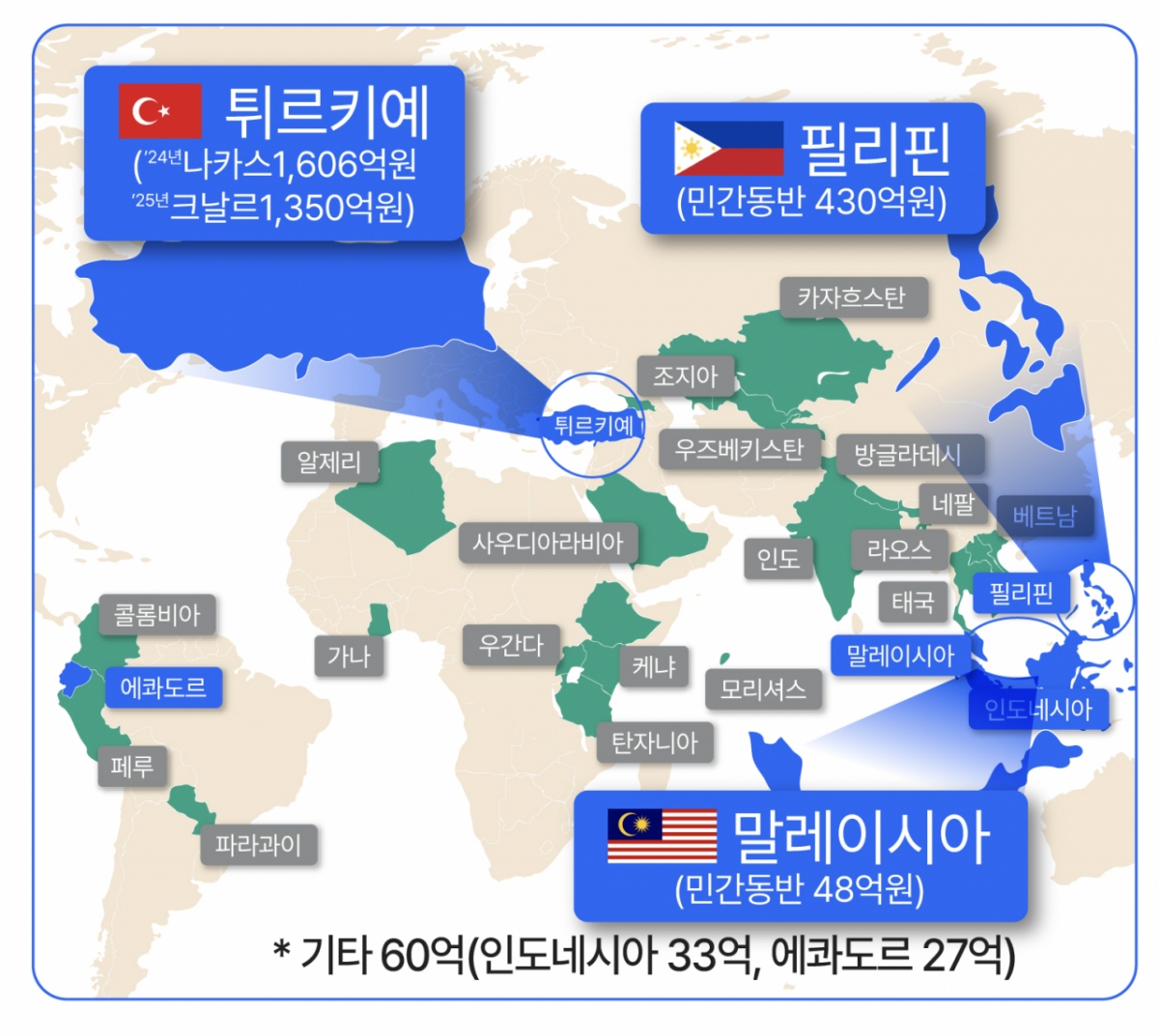 22일 국토교통부에 따르면 지난해까지 도로공사의 해외사업 누적 수주액은 총 6838억원으로 집계됐다. 현재 전 세계 14개국에서 18건의 크고 작은 사업을 진행하고 있는데 이재명 정부 출범 직후인 지난해 10월 1350억원 규모의 '튀르키예 크날르~말카라 고속도로 대형 운영·유지관리 사업'을 따내면서 국가별 포트폴리오 다변화에 성공했다.