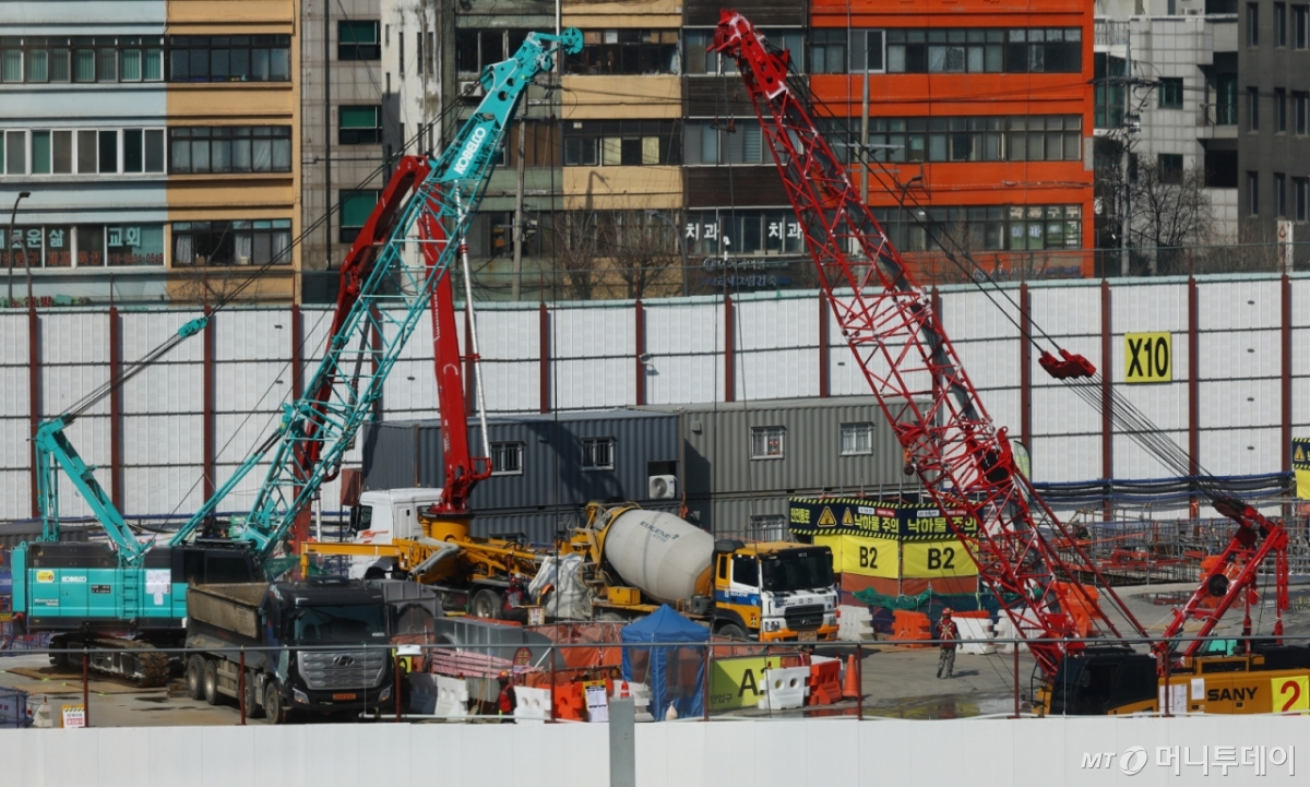 ![[서울=뉴시스] 황준선 기자 = 4일 서울 시내 한 공사현장에서 근로자들이 작업을 하고 있다. 2026.03.04. hwang@newsis.com /사진=황준선](https://thumb.mt.co.kr/cdn-cgi/image/f=avif/21/2026/03/2026032308273240790_1.jpg)