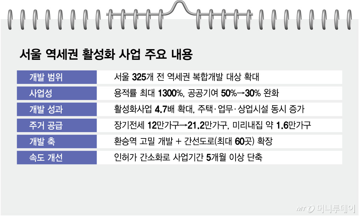 서울시가 시내 325개 전역세권을 대상으로 고밀·복합개발을 전면허용한다. 그동안 강남권에 치우쳤던 도시개발의 핵심축을 동북권, 서북권, 서남권 등 비강남 역세권 중심으로 분산·확장해 나간다는 전략이다.