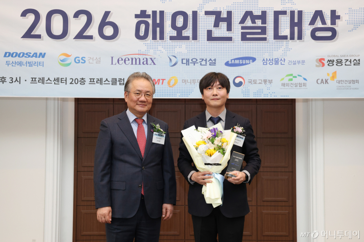 31일 서울 중구 프레스센터에서 열린 '2026 해외건설대상'에서 강호병 머니투데이 대표(왼쪽)가 투자사업 부문 최우상을 수상한 한만근 삼성물산 상무와 기념촬영을 하고 있다. 독자들의 PICK! 암 투병 아내 버리고 '딸 친구'와 재혼…유명 축구해설가 사생활 논란 돌싱 여성 5명 중 1명은…"재혼 대신 성인용 인형도 괜찮아" 임신 소식에 "딴 X이랑 잤냐" 폭언한 남편…알고 보니 무정자증 '17세 연상' 남친, 알고 보니 돌싱에 아이까지…막장 현실
