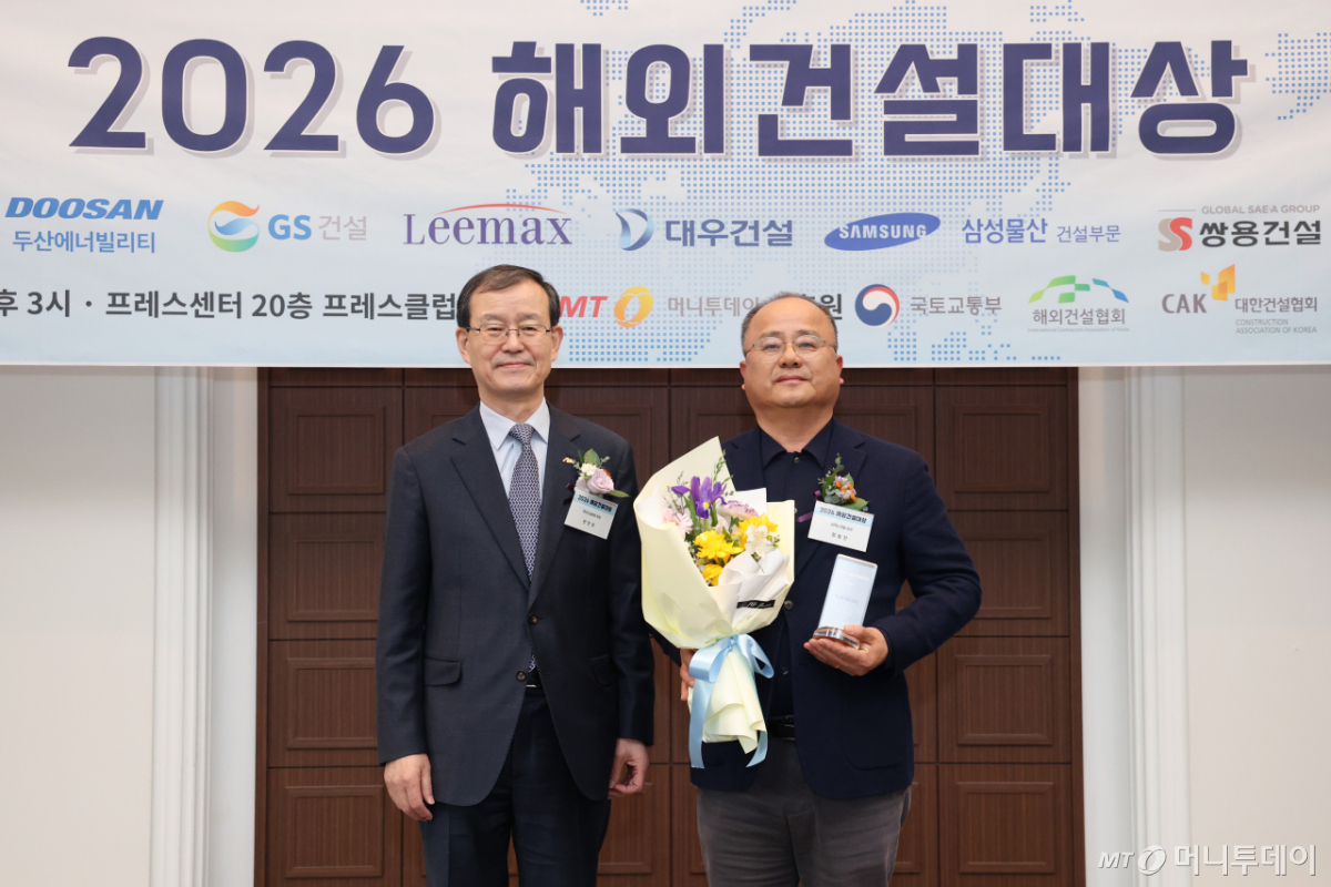 31일 서울 중구 프레스센터에서 열린 '2026 해외건설대상'에서 한만희 해외건설협회장(왼쪽)이 특별상을 수상한 장동진 리맥스개발 상무와 기념촬영을 하고 있다. 독자들의 PICK! 암 투병 아내 버리고 '딸 친구'와 재혼…유명 축구해설가 사생활 논란 돌싱 여성 5명 중 1명은…"재혼 대신 성인용 인형도 괜찮아" 임신 소식에 "딴 X이랑 잤냐" 폭언한 남편…알고 보니 무정자증 '17세 연상' 남친, 알고 보니 돌싱에 아이까지…막장 현실