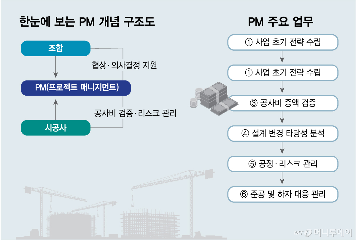 한 정비업계 관계자는 "조합과 시공사 간 힘겨루기가 반복되는 상황에서 전문성을 기반으로 한 중재 기능이 사업 안정성을 높인다는 점에서 PM은 '필요한 비용'이라는 인식이 확산되고 있다"며 "정비사업 시장에 맞춰 비용 부담과 적용 범위 등을 적정하게 관리하려는 시도가 필요할 것"이라고 말했다.