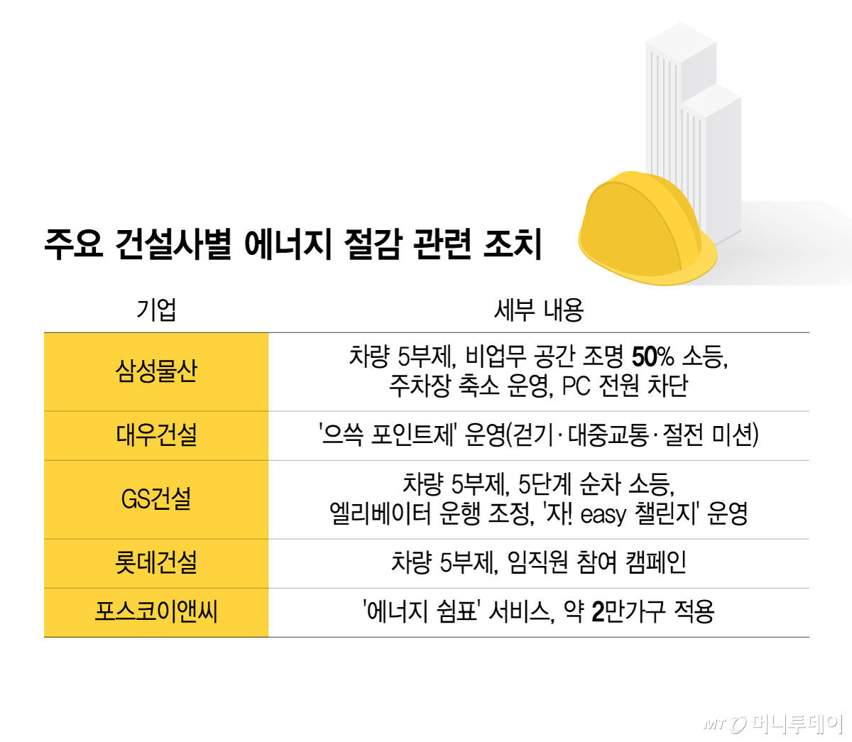22일 업계에 따르면 대형 건설사들은 전력 수급 불안과 비용 부담에 대응해 사내 에너지 절감 캠페인을 강화하고 있다.