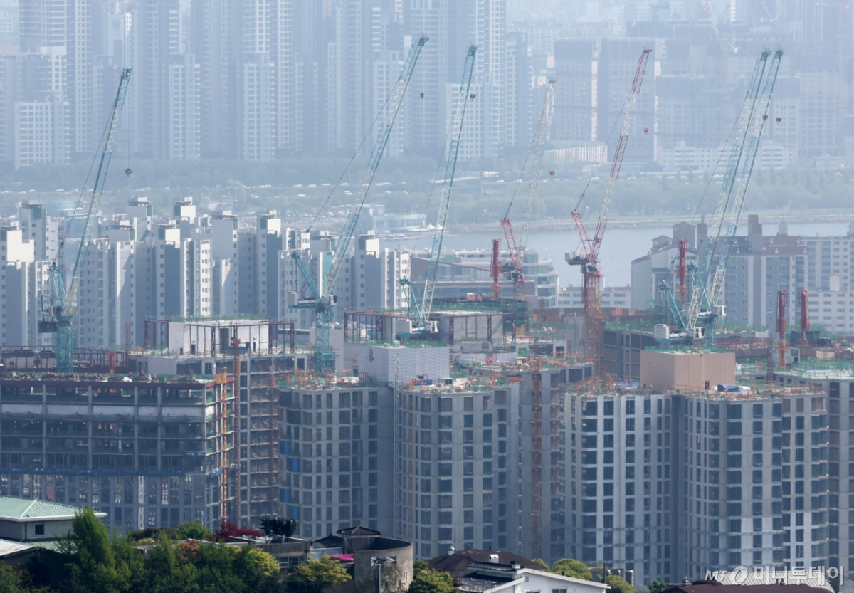 ![[서울=뉴시스] 배훈식 기자 = 서울 민간아파트 3.3㎡(1평)당 분양 가격이 약 5489만원으로 두 달만에 최고치를 경신했다. 사진은 19일 오후 서울 중구 남산에서 바라본 도심 신축 아파트 공사 현장 모습. 2026.04.19. dahora83@newsis.com /사진=배훈식](https://thumb.mt.co.kr/cdn-cgi/image/f=avif/21/2026/04/2026042209053255411_1.jpg)