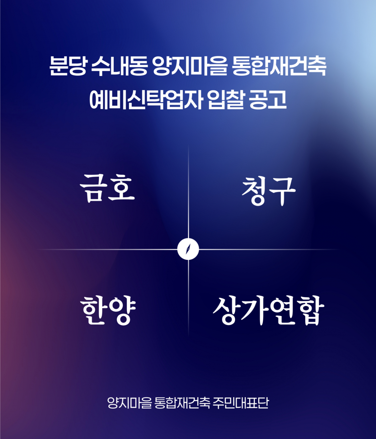 분당 수내동 양지마을(금호·청구·한양아파트, 상가연합) 통합재건축 주민대표단이 새로운 예비신탁업자 선정에 나섰다.