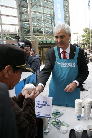 이번 행사에는 데이비드 에드워즈 SC제일은행장을 비롯한 임원진이 커피 서빙 도우미로 직접 참여한다.