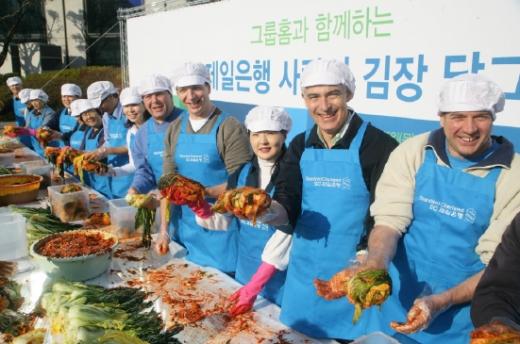 데이비드 에드워즈 SC제일은행장은 "나를 포함한 대부분의 외국인 경영진들이 처음 체험하는 김치담그기를 통해 한국문화를 이해하는데 많은 도움이 됐다"며 "앞으로도 경영진과 함께 사회공헌활동에 자원봉사자로 참여하는 기회를 자주 갖겠다"고 말했다.