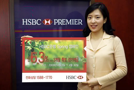 HSBC은행은 이 기간 신규 고객과 프리미어 고객들을 대상으로 3개월 만기 정기예금에 연 6.3%의 금리를 제공한다. 최저 가입금액은 프리미어 고객의 경우 1000만원 ,신규고객의 경우 3000만원이다.