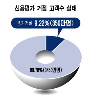 금융거래 실적이 충분치 않아 신용평가를 거절당한 경우가 대부분이다. 주부, 사회 초년생, 저신용자 등이 종종 겪는 문제다. 2006년 1분기 현재 신용평가가 거절된 사람은 349만명에 달한다. 전체 경제활동인구(3794만명)의 9.2%에 해당한다. 평가거절까지는 아니어도 신용정보가 부족하다는 이유로 불이익을 당한 사람도 11%에 이른다.