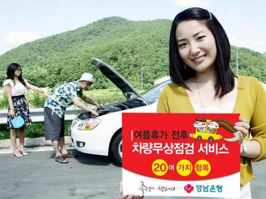 경남은행은 여름 휴가철을 맞아 다음달 30일까지 '차량 무상점검 서비스'를 실시한다고 3일 밝혔다. 이번 서비스는 동부화재와 제휴로 실시되며 배터리, 타이밍벨트, 냉각수(부동액) 등 20여개 항목을 점검해준다. 경남은행 영업점에 비치돼 있는 무상점검서비스 쿠폰을 수령해 가까운 동부화재 프로미월드 지정점을 방문해서 이용할 수 있다. 독자들의 PICK! 남창희 아내 정체 '깜짝'...무한도전 나온 '한강 아이유' 윤영경 딴 여자와 하의 벗고 음란통화...'자칭 일편단심' 남편 돌변 "뼈말라 욕먹지만" 170㎝·41㎏ 최준희, 웨딩드레스 자태 공개 여성 관광객 집단 성폭행하고 일행까지 죽였다