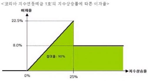 '코리아 지수연동예금 1호’는 ‘코스피200지수’에 연동되며, 만기는 1년이다.