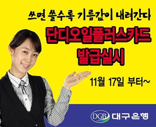 대구은행 주유특화카드인 '단디오일플러스(oil plus)카드'를 발급한다고 16일 밝혔다.