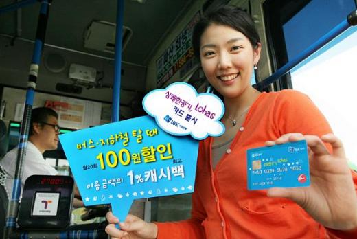 기업은행(23,800원 ▲1,400 +6.25%)은 버스나 지하철 등 대중교통을 이용하면 건당 100원을 1일 1회, 1개월에 20회까지 할인해 주는 '상쾌한 공기 로하스 카드'를 출시했다고 15일 밝혔다.