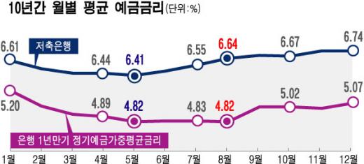 최근 10년 평균금리 은행 1월, 저축은행 12월 최고