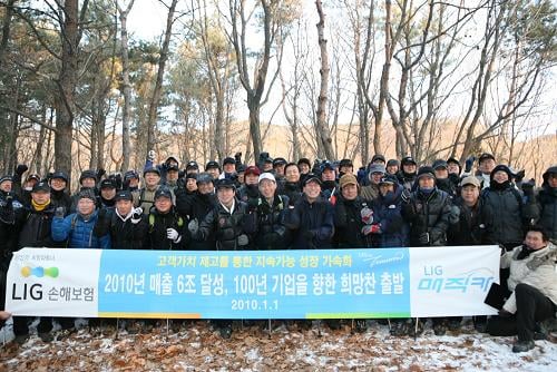 LIG손해보험은 지난 1일 임직원 100여 명이 수원 소재 광교산 형제봉에 올라 희망찬 2010년을 다짐하는 '신년 해돋이 행사'를 개최했다고 3일 밝혔다.
