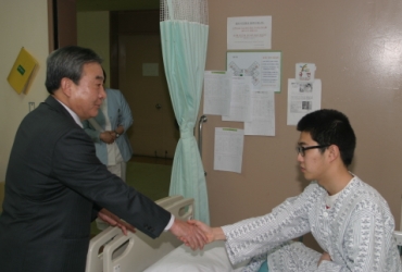 이상용 손해보험협회 회장(사진 왼쪽)이 10일 오전 국립경찰병원을 방문해 연말연시 음주운전 등 교통법규 위반 단속과 치안 유지 활동 중에 부상당한 경찰과 전.의경을 위로했다. 이 회장은 "연간 업무 수행중에 1600여명의 경찰이 죽거나 다친다"며 "경찰 업무에 대한 존중과 경찰에 대한 국민들의 깊은 관심과 애정이 필요하다"고 밝혔다. 손보협회는 위문품을 전달했고 부상 경찰관들의 쾌유과 지속적인 사회안전 유지를 기원했다. 독자들의 PICK! '17세 연상' 남친, 알고 보니 돌싱에 아이까지…막장 현실 '유방암 진단' 이혼녀, 세 아이 생계 막막…전남편은 외도 임신 소식에 "딴 X이랑 잤냐" 폭언한 남편…알고 보니 무정자증 엄마 외도 목격한 12살 딸...피멍 들도록 맞아도 "이혼하지 마"