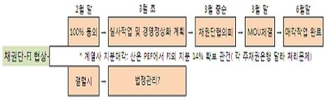 일부 FI가 투자자들의 법적 소송 가능성을 이유로 동의서 제출을 거부하고 있기 때문이다. 이들은 최소한 피소송은 피할 수 있다는 점에서 법정관리가 차라리 낫다는 입장이다.