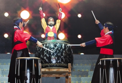 이날 공연에서 전통의상을 입고 무대에 오른 신 회장과 임원들은 서로 호흡을 맞추며 10여분간 신명 나는 북소리를 울렸다. 특히, 신 회장은 수염까지 붙이고 무대 중앙에서 가장 큰 북을 치며 공연을 이끌었다.