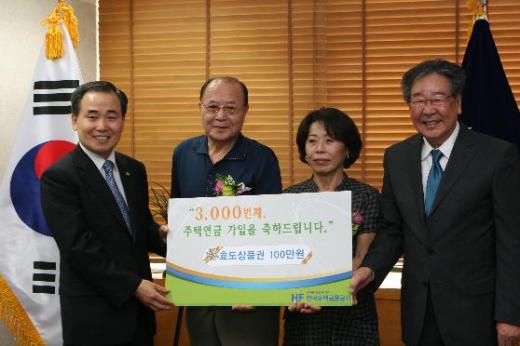 공사는 3000번째 가입자인 이 씨 부부에게 100만 원 상당의 효도상품권을 증정하는 행사를 마련하고 '주택연금 3000번째 가입'을 축하했다.